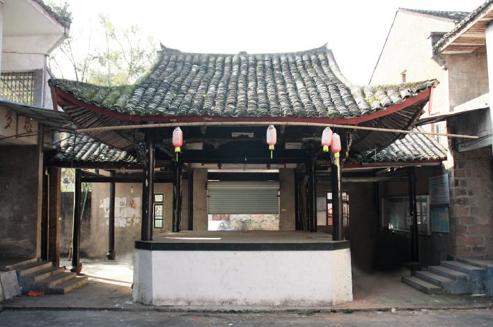 戏台为陈氏宗祠组成部分。该宗祠始建于清乾隆丁亥年(1767 ),嘉庆甲戌年(1814)移至樟岭。整体建筑还包括门厅、两厢廊及正厅,组成合院式院落,占地面积 940 平方米。现除正厅和戏台外,其余均已改建。