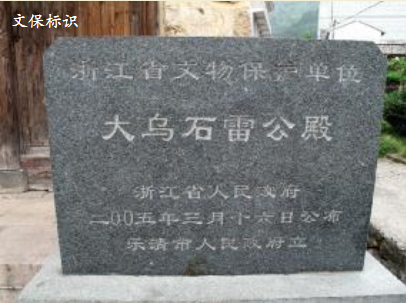 - 乐清市虹桥镇大乌石村雷公殿门厅内