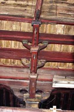 金乡城隍庙戏台位于苍南县金乡镇城中村城隍庙门厅内。