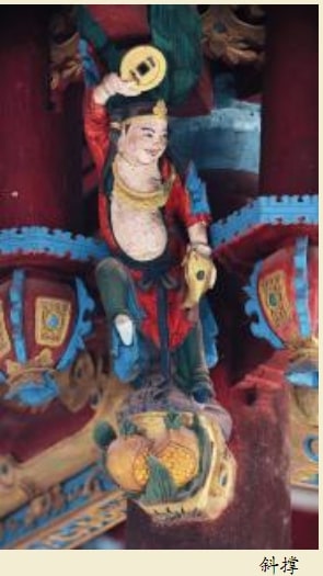台柱柱头向外出跳承托挑檐枋和挑檐檩,有花篮垂柱、束腰瓜楞垂柱和束腰仰覆莲垂柱,花篮垂柱上嵌蓝色玻璃。垂柱间置花板,透雕如意卷草纹,并嵌蓝色玻璃。垂柱柱身向外出双下昂承托外跳檐檩,昂嘴刻成装饰性象鼻状,二昂上置小斗承托外跳檐枋。出柱榫头刻出麻叶状耍头,耍头间置挂落,刻寿桃纹、卷草纹等。转角处置斜撑承托挑檐枋和挑檐檩,斜撑圆雕“刘海戏金蟾”。斜撑下置底座,雕刻出石榴、葵花等形状。椽头绘铜钱纹,椽身绘回纹花卉纹。屋面歇山造,施清水脊,盖小青瓦,仅在正脊两端塑尖叶状脊头。