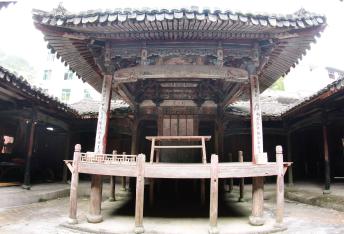 戏台是杨氏宗祠的组成部分。宗祠整体建筑还包括门厅、两厢廊和正厅,组成合院式木构建筑,占地面积约478.80平方米,建于清道光年间。